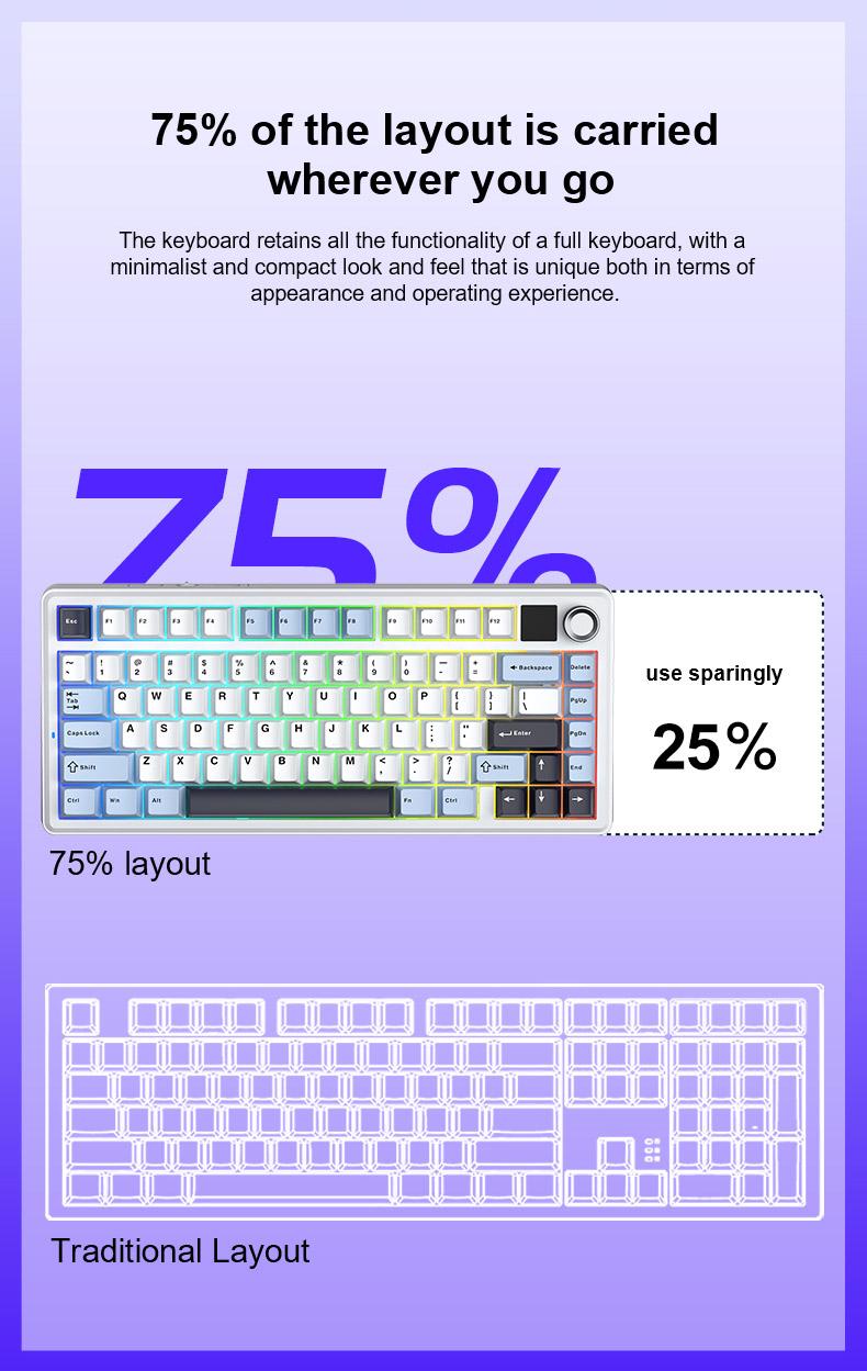 - คีย์บอร์ดขนาด 75% โครงสร้างคีย์บอร์ดแบบ Gasket Structure